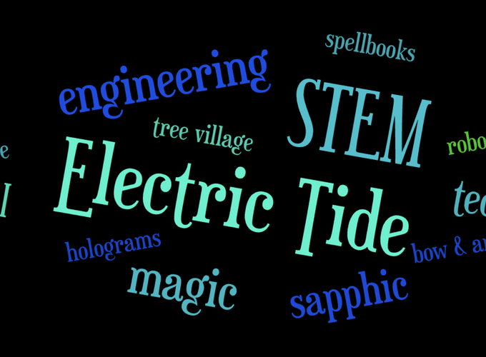 Born without magic into a magical world, Freya has to use engineering and science to fake having magical abilities. However, the village elders forbid the use of technology. Freya finds an underground society of others like her, known as the Electric Tide, to learn from until disaster strikes and she’s forced to choose sides.